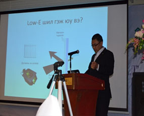 Хатаасан шил болон LOW E шилний нийлүүлэлтийн талаар танилцуулаа. Ердийн шилийг өндөр температурт уяраасны дараа огцом хөргөснөөр шилний бат бэх даруй 4-5 дахин нэмэгдэж, дулааны энерги шилний дотоод бүтцэд шингэж үлдсэнээр дулаан тусгаарлах чадвар нь эрс нэмэгддэг байна. Орчин үеийн барилгын шилэн фасаданд хатаасан шил зонхилох үүрэг гүйцэтгэдэг. Хатаасан шилний технологи болон зуухны ажиллах хүчин чадлын талаар танилцуулсан ба эрсдэл өндөртэй, ашиг багатай, ачаалал ихтэй бизнес ба дотоодийн хэрэгцээнээс илүү гарсан үйлдвэрлэл байгаад ашиггүй болохыг онцолж байлаа. Жишээ нь 60 сая хүн амтай Солонгос улсад ердөө 50 зуух ажиллаж дотоодын хэрэгцээг хангаад, экспортонд гаргадаг байхад 3 сая хүн амтай манай улсад 5 зуух ажиллаж эхэлсэн ба цаана нь олон төсөл яригдаж байгааг бодож үзэх асуудал бололтой.