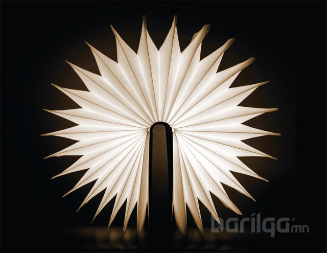 Өвөрмөц содон бас эдийн засгийн хэмнэлтэй өрөөний гэрэл. Түүнчлэн энэхүү ном мэт гэрлийг эгээ л номын хавтас хаах мэт унтрааж болдог нь хэрэглэгчдийн сэтгэлд ихээхэн нийцээд байгаа юм байна. Мөн хананд байрлуулсан ч, ширээ дээрээ тавьж хэрэглэсэн ч болохоор бүтээгджээ.
