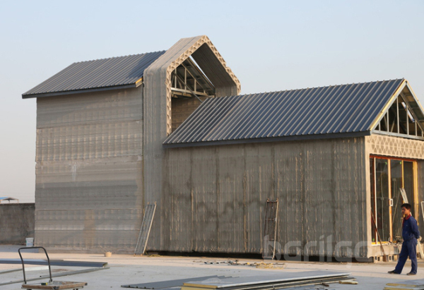 . “WinSun Decoration Design Engineering” компани тус бүр нь 10 м өргөн, 6,6 м өндөртэй 4 ширхэг аварга том 3D хэвлэгч ашиглан Шанхай хотод байшин барьж байгаа тухай Хятадын Xinhua агентлаг мэдээлжээ. Цемент болон барилгын хог хаягдал ашиглан ханыг үе үеэр нь хийх бөгөөд хэвлэгч машиныхаа хэсгүүдийг хилийн чанадаас худалдан авч, Сужоу дахь үйлдвэрт угсарсан байна.
