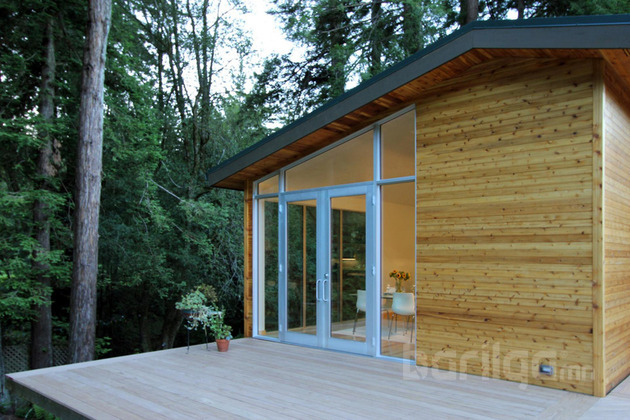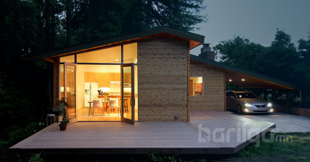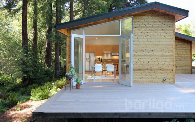 Моддын дунд, горхины хажууд байрлах энэхүү гайхалтай сууц нь гэр бүлээрээ цагийг зугаатай өнгөрөөх амар тайван орчныг бүрдүүлж өгснөөрөө онцлог ажээ. Байшингийн гадаргууг гоёмсог царс модоор бүрсэн ба модон тавцангаар хүрээлсэн.