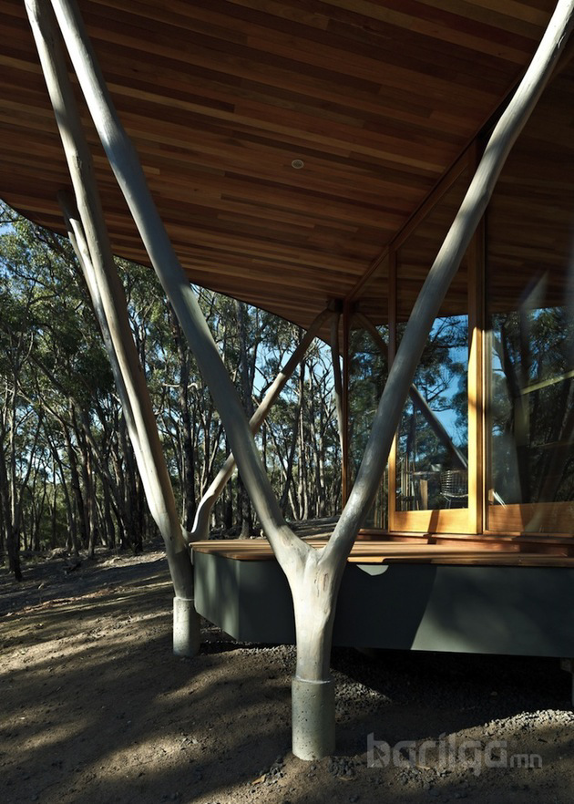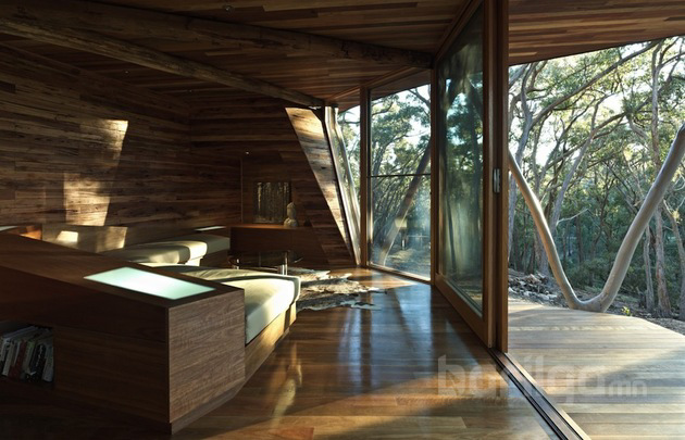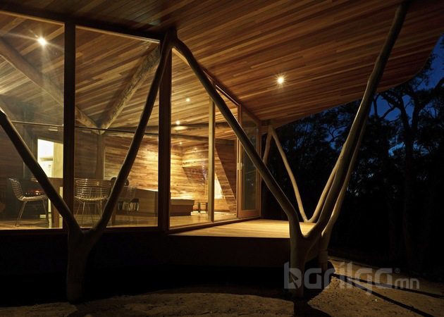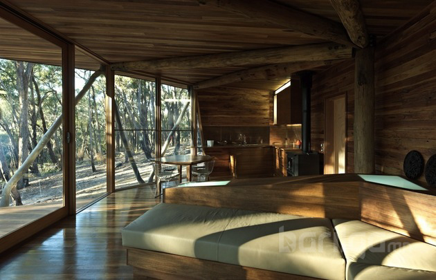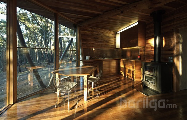 Амралтын өдрүүдээр оффис, бичиг цаасны ажлаас зугатаан энэ жижигхэн байранд ирдэг Австралийн нэгэн хосод зориулан архитектор Паул Морган энэхүү сууцыг зохион бүтээжээ. Ингэхдээ өөрийн туршлага дээр үндэслэн уламжлалт модон хийцийг орчин үеийн хэв загвартай хослуулан сайжруулсан байна.
