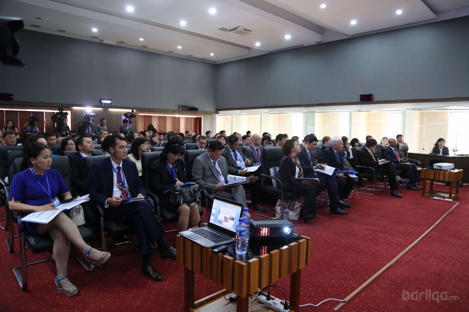 Түүнчлэн “Монгол Улсын Засгийн газрын 2012-2016 оны үйл ажиллагааны хөтөлбөр”-т эдийн засгийн хөгжлийг хангах, тогтвортой өсөлтийг дэмжих зорилгоор хот суурин, түүний дэд бүтцийг хөгжүүлэх, хүн амын хэт төвлөрлийг сааруулахад чиглэсэн “Бүх аймгийн төв болон 15000-аас дээш хүн амтай суурин газрыг улсын зэрэглэлтэй хот болгон өөрчлөх бодлогыг хэрэгжүүлэх”-ээр тусгасны дагуу Барилга, хот байгуулалтын яамнаас төв рүү чиглэсэн хүн амын шилжилт хөдөлгөөнийг сааруулах, орон нутагт тогтвор суурьшилтай эрүүл, аюулгүй, таатай орчинд амьдрах нөхцлийг бүрдүүлэх, орон сууцны хангамжийг нэмэгдүүлэх хүрээнд “Зарим хотуудад улсын зэрэглэл тогтоох тухай” асуудлыг Улсын Их Хурлаар шийдвэрлүүлэх, аймгийн төвүүдийн хөгжлийн ерөнхий төлөвлөгөөг шинэчлэн боловсруулах, инженерийн дэд бүтэц болон 1000 айлын орон сууцны шинэ хорооллыг байгуулах, “Сумын төвийн шинэчлэл” зэрэг бүтээн байгуулалтын ажлыг улсын төсвийн хөрөнгө оруулалтаар хийж байгааг энд онцлон дурдъя. Монгол улсын хот, суурины тогтолцоо, хууль эрх зүйн орчинг олон улсын жишигт хүргэх, хотжилтын явцад тулгарч буй хүндрэл, бэрхшээлийг оновчтой арга замаар шийдвэрлэх, одоогийн болон ирээдүйн хэрэгцээ, шаардлагыг зөв тодорхойлсон төрийн бодлого, төлөвлөлтийг хэрэгжүүлэхээр ажиллаж байгаа энэ үед Та бүхний хувь нэмэр, оролцоо үнэ цэнэтэй, өндөр ач холбогдолтой” гэж хэллээ. Хотын тогтвортой хөгжлийг бий болгох нь сэдэвт хэлэлцүүлэг мэтгэлцээн хэлбэрээр явагдаж, иргэн бүрт хүртээмжтэй, хүний хөгжлийг дэмжсэн хотжилтыг Монгол Улсад хэрхэн бий болгох вэ? Монгол Улсад эрүүл, аюулгүй, амьдрах таатай нөхцөл бүхий тогтвортой хөгжилтэй, ухаалаг хотыг хэрхэн хөгжүүлэх вэ? Хотын засаглалд тулгамдаж буй асуудал юу вэ? Хотжилтын асуудал үндэсний, салбарын болон бүсийн хөгжлийн бодлого, төлөвлөлтөд хэрхэн тусгагдсан бэ? Зэрэг асуудлуудыг хөндлөө.