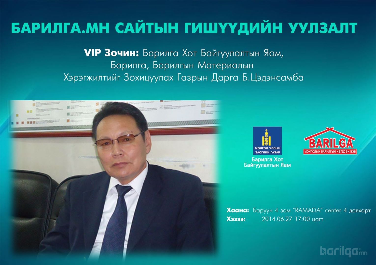27-ны өдөр болох бөгөөд уулзалтанд Барилга, хот байгуулалтын яамны Барилга, барилгын материалын бодлогын хэрэгжилтийг зохицуулах газрын дарга Б.Цэдэнсамба урилгаар оролцож чөлөөт ярилцлага өрнүүлнэ.