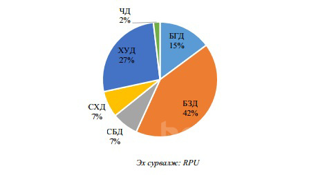 Зураг 2 Шинэ орон сууцны төслийн тоо дүнд эзлэх хувиар, дүүргээр-2014.11-р сар