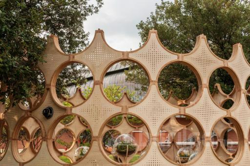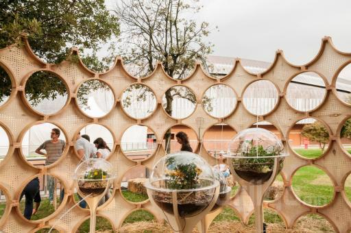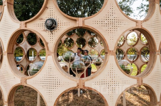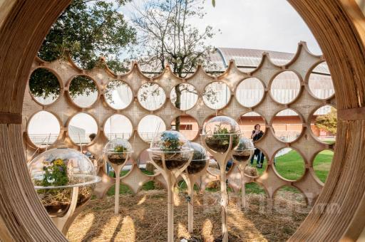 Энэхүү задгай модон танхимыг хараад юу болох эсэх нь тодорхойгүй харагдах байх. Тэгвэл энэ жижиг тойруулсан танхим нь шавьжнуудад зориулсан тэдний өдөр тутмын амьдарлыг гэрэл зургын хальснаа буулгаж, дуу дүрстэй цогц кино хийх судалгааны танхим юм. Танхимын дотор байрласан зургаан ширхэг бөмбөрцөг хэлбэртэй бөмбөлгөн дотор хөрс шороо болон түүн дээр нь цэцэг ногоо тарьж, ягл эх газар шиг байхаар шавьжнуудыг үүрлүүлэх юм.