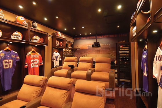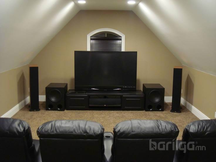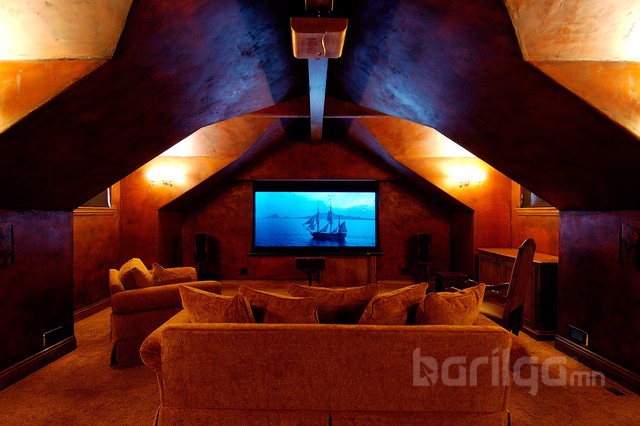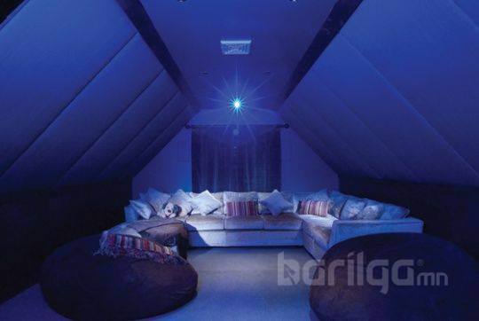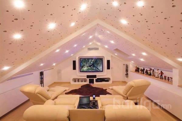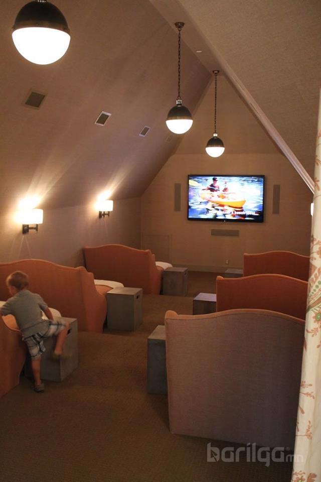 Айл бүр байшингыхаа зай багтаамжийг зөв зохион байгуулалттай ашиглаж чадвал юуг ч бий болгож бүтээж болох юм. 2 давхар хувийн хаустай айлуудын байшингийн ихэнх нь мансардтай байдаг. Мансардыг хэрвээ зөв ашиглаж чадвал 3 давхар байшингаас ялгаагүй юм. Тэгвэл доорх зурганд мансардыг гэрийн театр болгон ашиглаж байгаа нь үнэхээр тав тухтай тохилог орчин бүрдүүлж чаджээ.