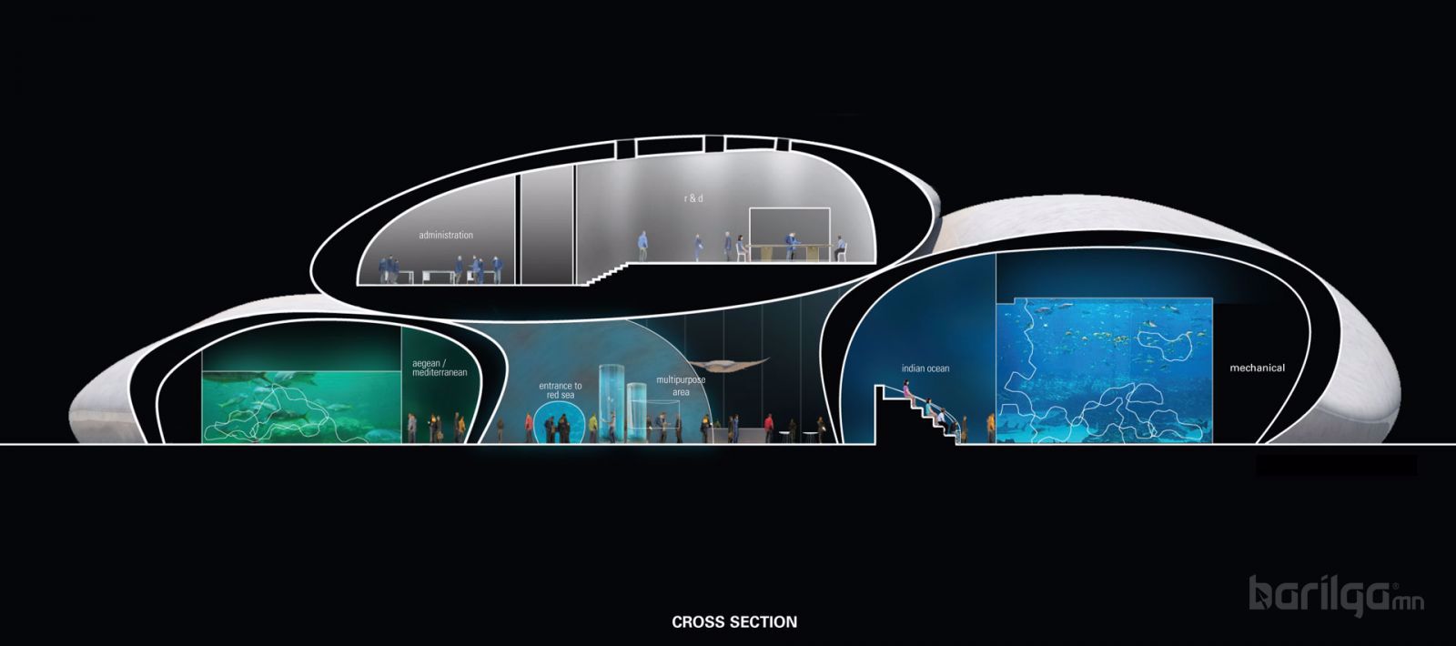 Дэлхийн олон орны далай доторх амьдралыг нэг доороос харах энэхүү гайхалтай бүтээн байгуулалт нь архитектурын шинэлэг шийдлээр баригдсан барилга юм. Гаднаас нь харахад барилга гэмээргүй, аврага том чулуунууд харагдах боловч барилгын дотор талд далайн амьдралыг үзүүлэхээр барилгын 80 хувь нь нилэнхүйдээ аквириум байрлах юм. Уг аквириумыг Батуми гэж нэрлэх бөгөөд архитектурын шийдлийг Хенинг Лэрсон зохион бүтээжээ.