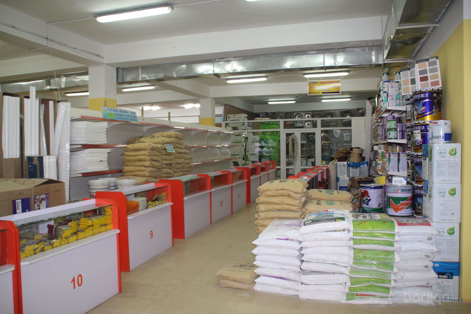 Тус барилгын материалын дэлгүүр нь зоорийн давхартаа 10 болон 20 м2 –ийн хэмжээтэй агуулахуудтай ба 1 давхартаа тохилог дулаахан лангуу болон павильонуудтай.
