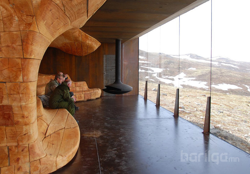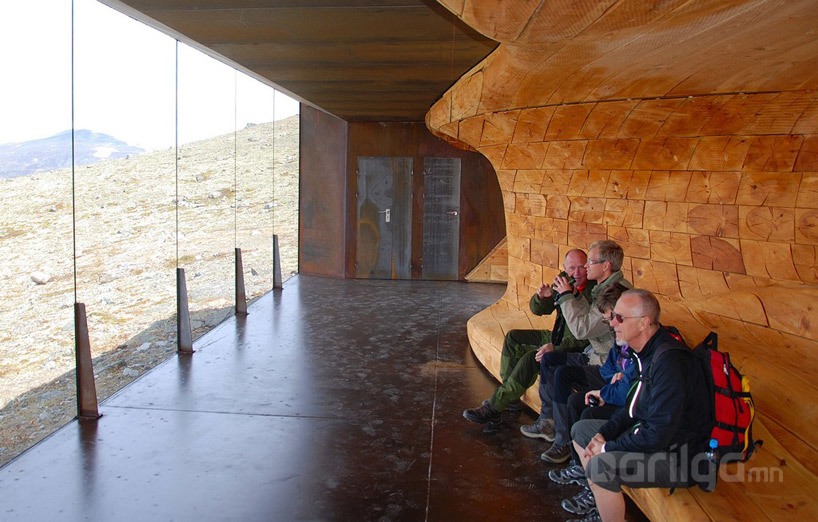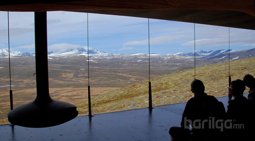 Энэхүү павильон нь зэрлэг ан амьтад болох цаа бугийг үргээлгүйгээр шилний цаанаас харах зориулалттай павильон юм. Норвеги улс бол өвөлдөө маш хүйтэн тул ууланд гарч буй уулчдад хорогдох байр ч болох боломжтой . Барилгын хувьд тийм ч том биш 90 метр квадрат төдийгүй гаднах барилгын материал нь органик хатуу боловсруулсан түүхий гангаар хийсэн нь ямар ч салхи шуурганд тэсвэртэй бат бөх талаас нь төлөвлөж хийсэн. Дотор интерьерийг хэлбэр загваргүйгээр эко талаас нь бодож модыг сийлж хэлбэр дүр гарган уусгаж өгсөн нь энгийн хирнээ маш өвөрмөц харагдуулж байна. Барилгын нүүрэн талын хананы хувьд битүү шилэн шийдлээр хийсэн нь онгон зэлүүд байгалийг тольдон суухад маш таатай мэдрэмжийг төрүүлэх юм.