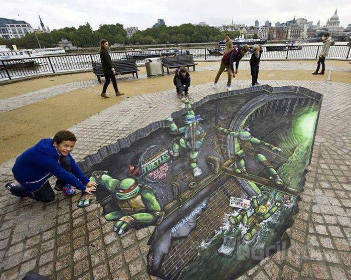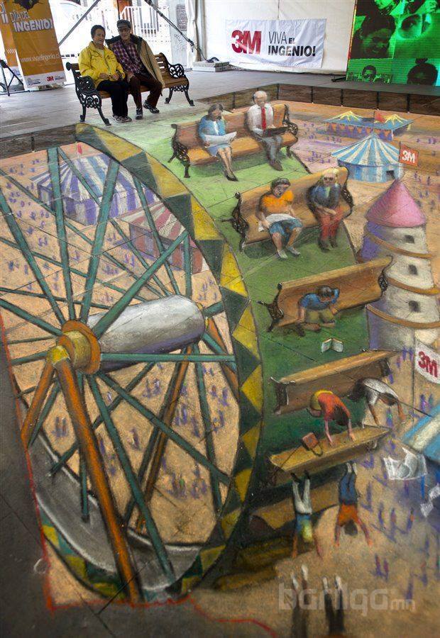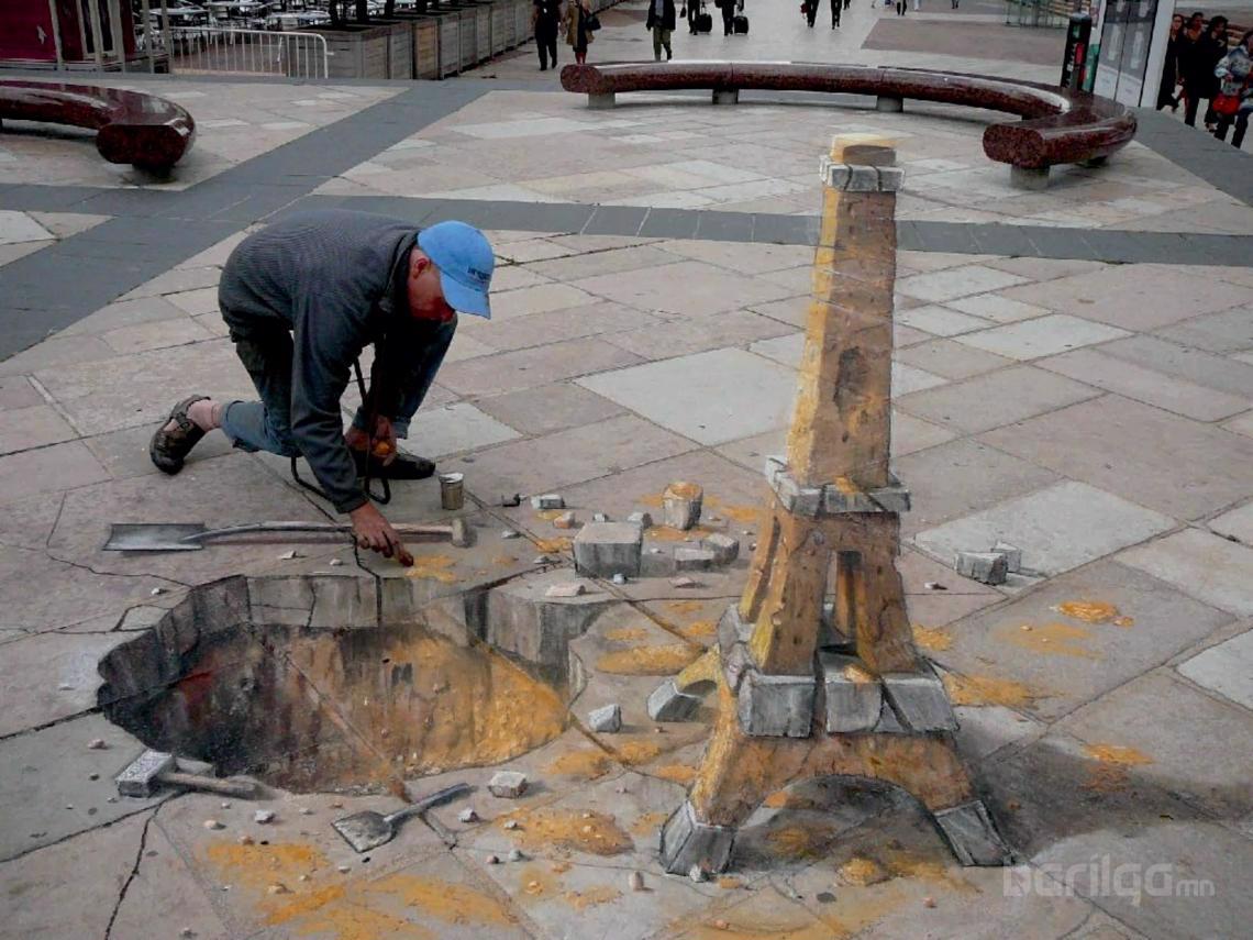 Урд нь уран зургийг зөвхөн хана юмуу цаасан дээр л зурдаг байсан бол одоо үед зургийг бодит мэт 3D хэмжээсээр хаана ч зурдаг болсон. Дэлхийн өндөр хөгжилтэй улс орнууд гудамжныхаа зай талбайг