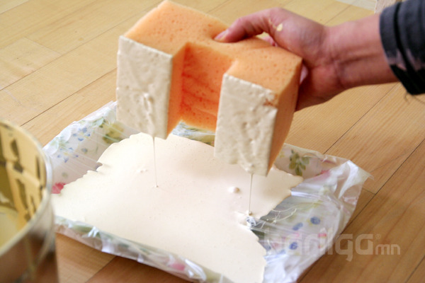 Бэлэн болсон пролоноо судал гаргах өнгийн будганд дүрж ханаа будна.