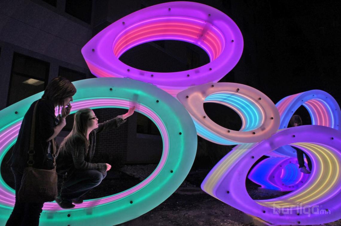 Техас мужид байрлалтай Сан- Маркос урлагийн их сургуулийн гадаа талбайд нэгэн өвөрмөц шөнө нь гэрэлтдэг лед гэрэлтэй, хэвтэж болохуйц сандал бүтээжээ. Энэхүү сандал өдөр нь усны дусал мэт харагдаж, шөнө нь олон төрлийн гэрлийг цацруулж тухайн орчиндоо өнгө үзэмж нэмдэг.