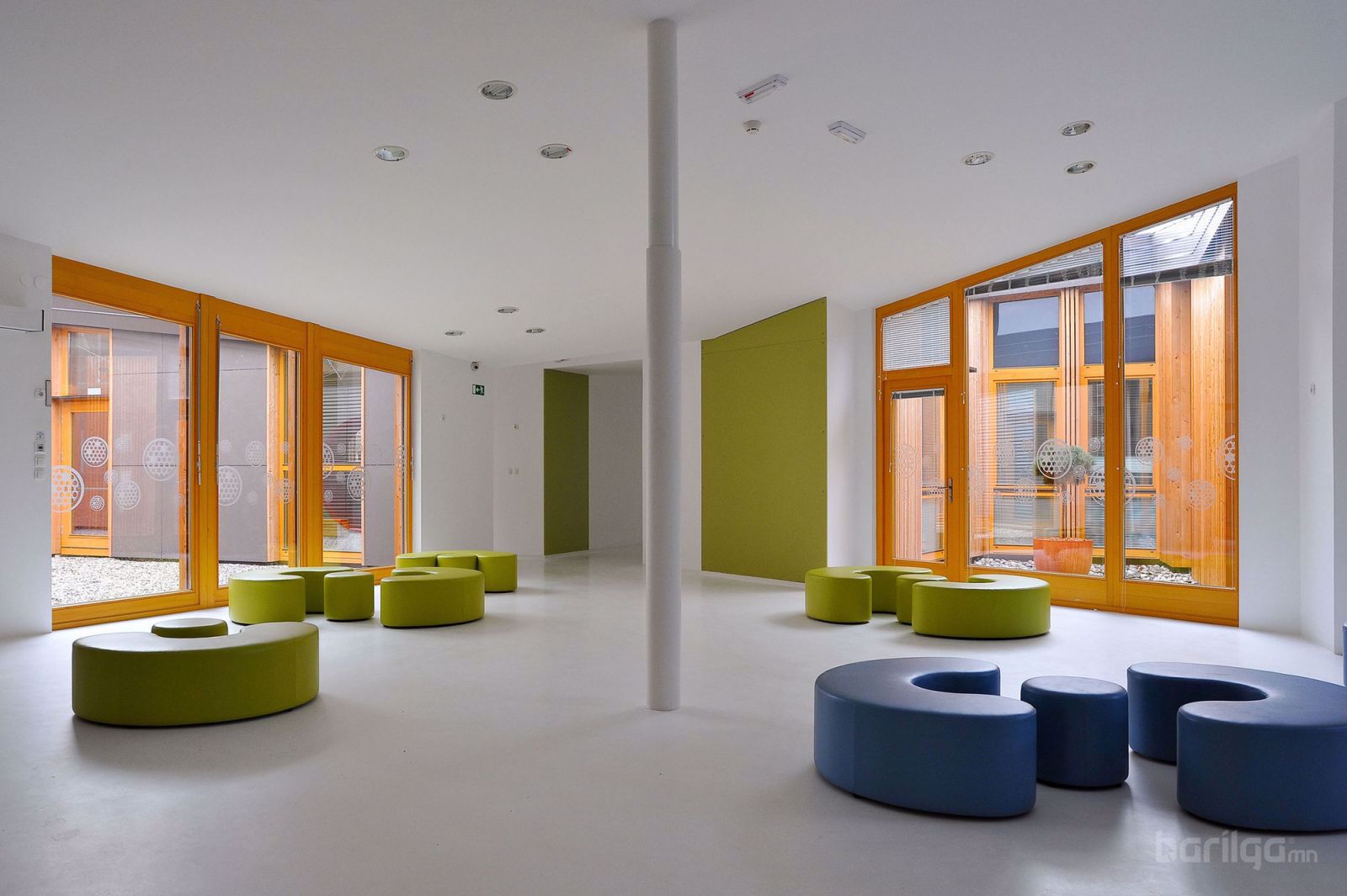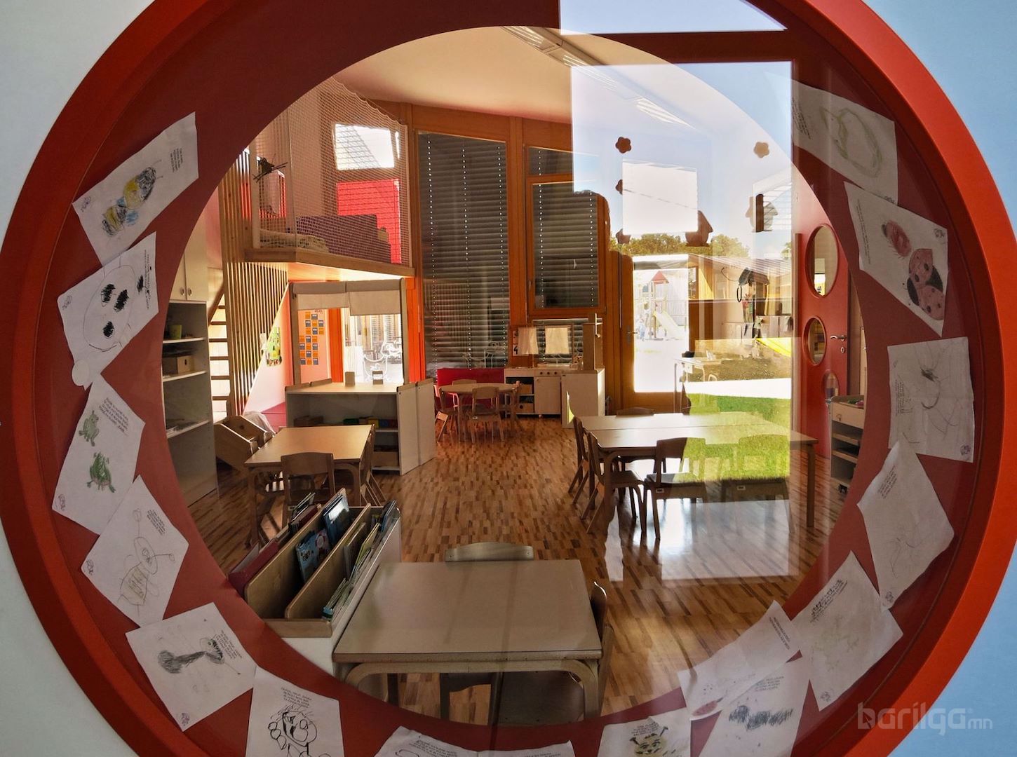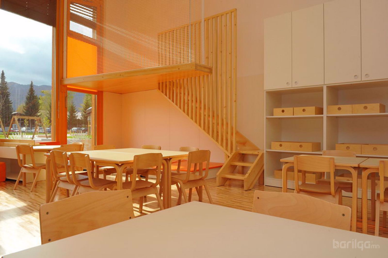 Хүүхдийн цэцэрлэг нь багачуудын тоглох хамгийн дуртай газар тул ийм төрлийн барилгын зургийг хийхдээ архитекторууд мөн “тоглох” шаардлагатай болдог. Нийт 4500 м2 талбай бүхий 24 өрөөг 400 хүүхдэд зориулан төлөвлөжээ. Ингэхдээ цэцэрлэгийн өрөөнүүдийг тоглоомын талбайг тойруулан төлөвлөсөн ба энэ нь аюулгүй орчин бүрдүүлэхээс гадна байгаль орчинтой танилцахад туслах юм.