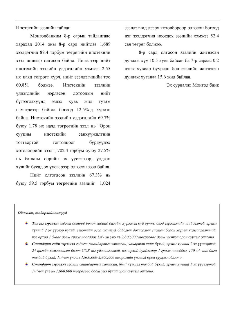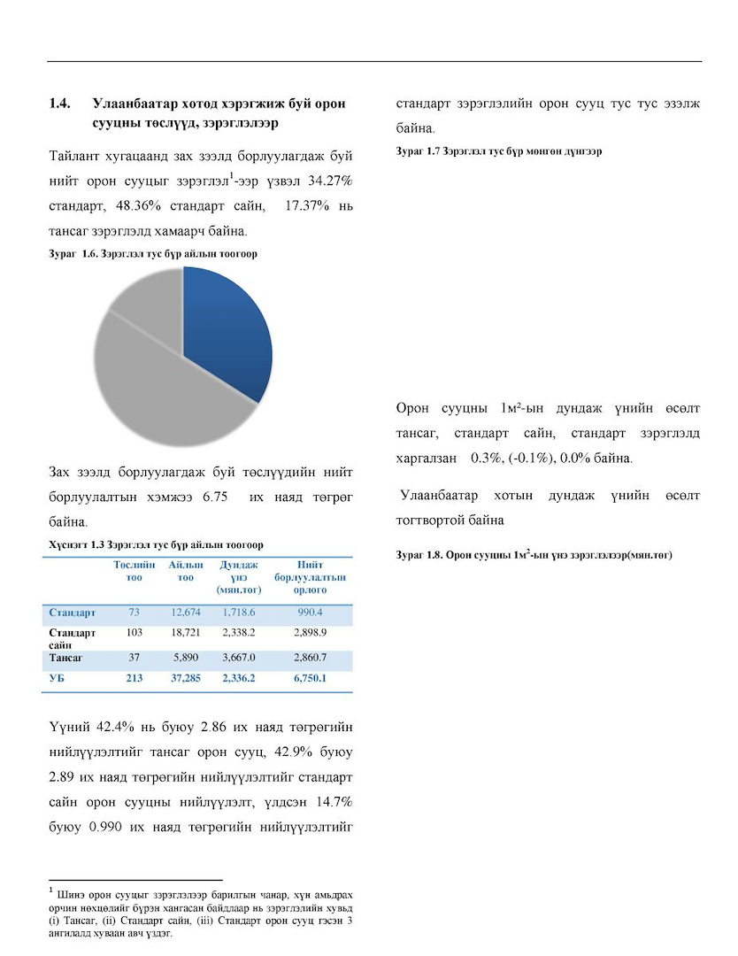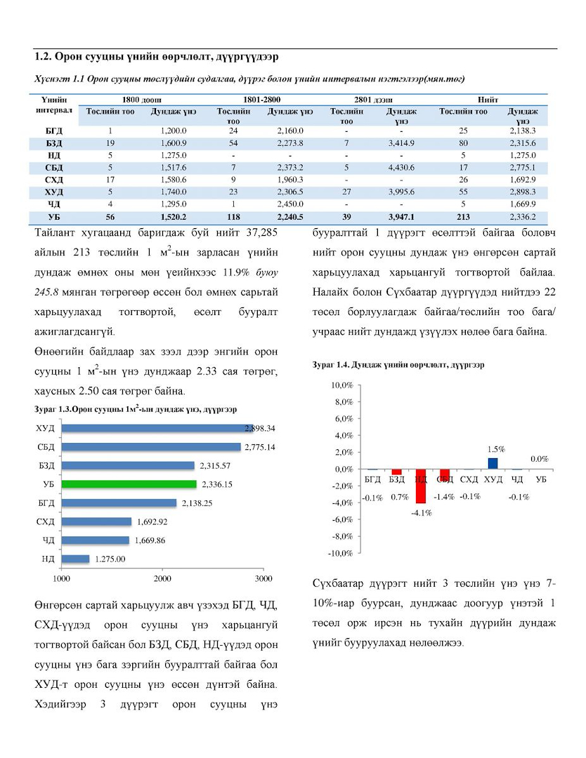 Орон сууцны үнийн судалгааг 9 сарын байдлаар гаргасан тойм