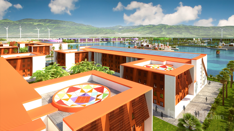 Архитектор Э. Кевин Шопфер эргээс холгүй 30000 хүн амьдарч, ХАА болон хөнгөн үйлдвэр эрхлэх боломжтой шинэ хөвөгч хотхоныг санал болгоод байна. Энэхүү хотхон Гайти улсад бий болох юм. Гайти бол ядуу буурайн зэрэгцээ байнга байгалийн гамшигт өртөж байдаг арлын улс юм. Энд гэр оронгүй хэдэн сая хүн бий. 3 км-ийн диаметртэй энэ цогцолбор нь хоорондоо шугаман сувгаар холбогдсон орон сууцны 4 хороололтой төдийгүй хар салхи, хүчтэй шуургыг тэсвэрлэх чадалтай энэ хотыг яваандаа өргөжүүлэн томруулж болохоор шийдэх юм байна.