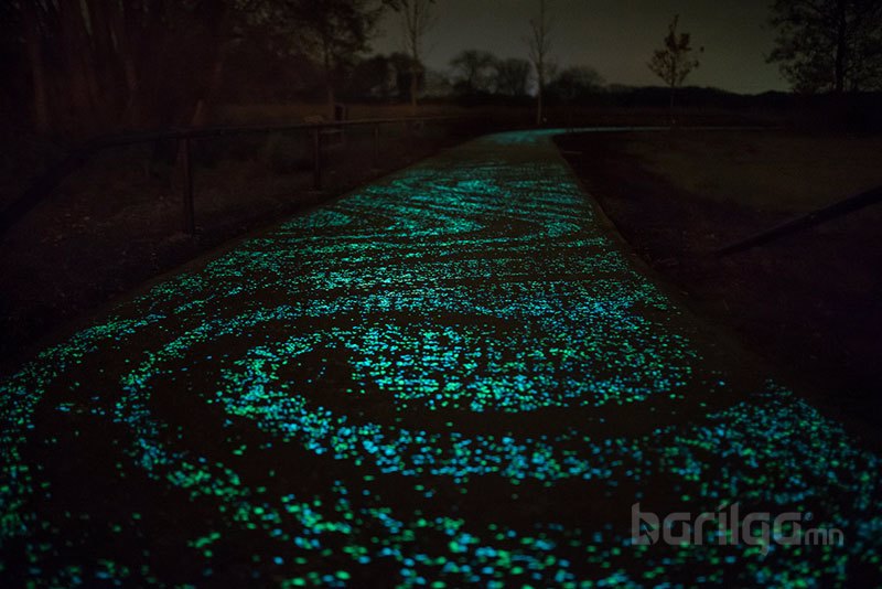 Дэлхийн хамгийн анхны нарны эрчим хүчээр ажилладаг шөнөдөө гэрэлтдэг фоспорттой замыг Нидерландын Eindhoven хотод унадаг дугуйн зам хэлбэрээр зорчих аялах боломжтойгоор шөнийн тэнгэрийг санагдуулам зам нээлтээ хийлээ.