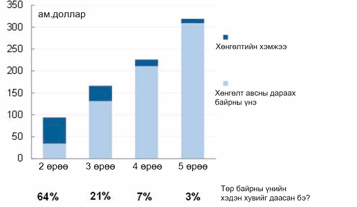 Туршлага 2. Иргэд орон сууцны мөнгө босгох нэмэлт эх үүсвэрийг бий болгох хэрэгтэй. Тухайлбал төрийн зээл, нийгмийн хамгааллын сангууд.