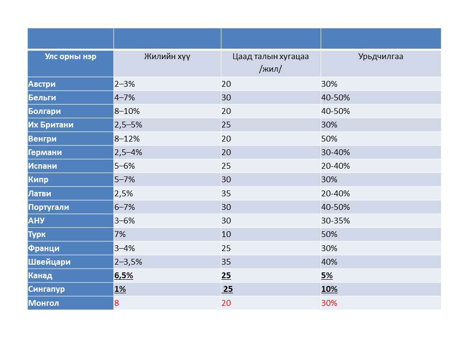 Дэлхийн зарим орнуудын ипотекийн зээлийн нөхцөл