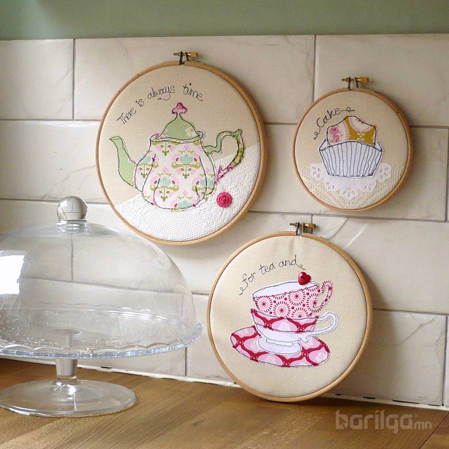 Сүүлийн үед айл бүрт гар аргаар хийсэн гоёл чимэглэл сувинер эд зүйлсээр гэрээ чимэх нь түгээмэл болсон. Энэхүү гоёлын хатгамалыг гэрийхээ интерьерт зохицуулан хийж урлавал таны гэрийг тансаг чамин харагдуулах юм.