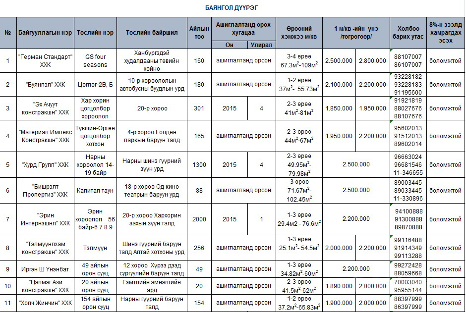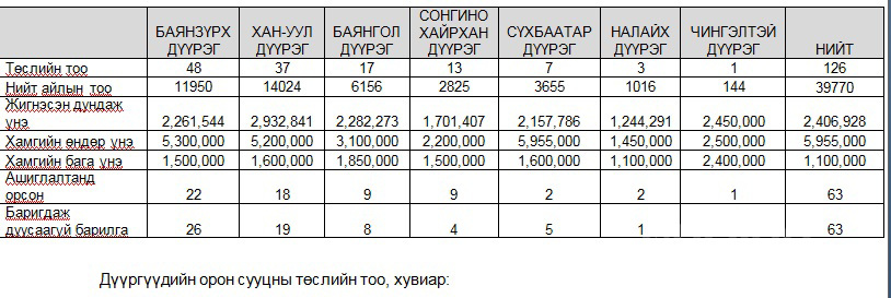 нийт долоон дүүрэгт 126 төслийн 39 770 айлын орон сууц борлуулагдаж байна