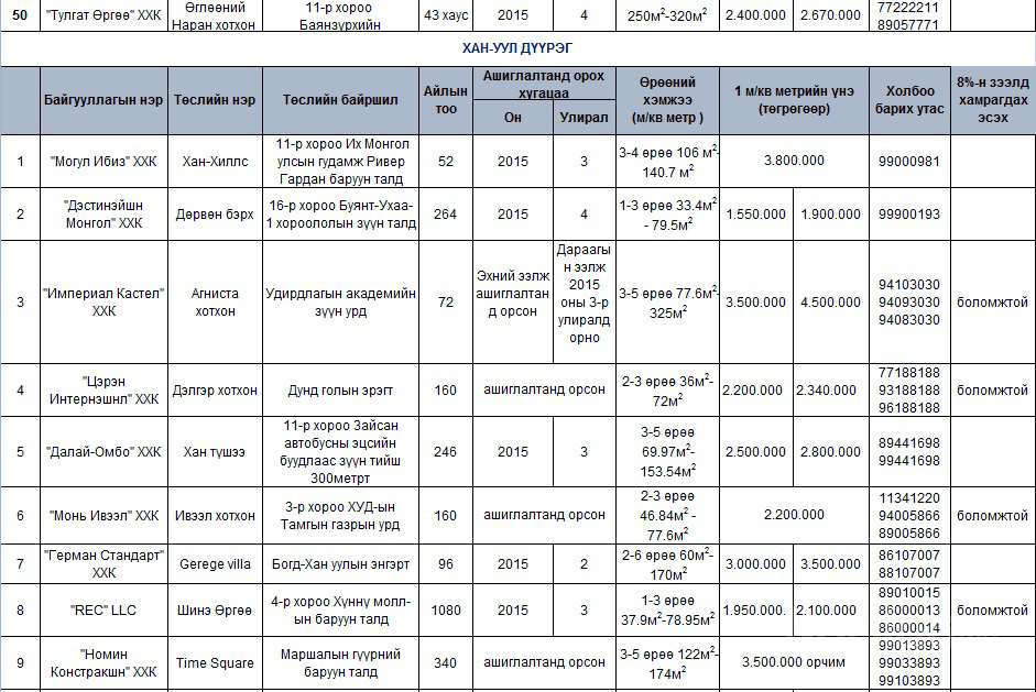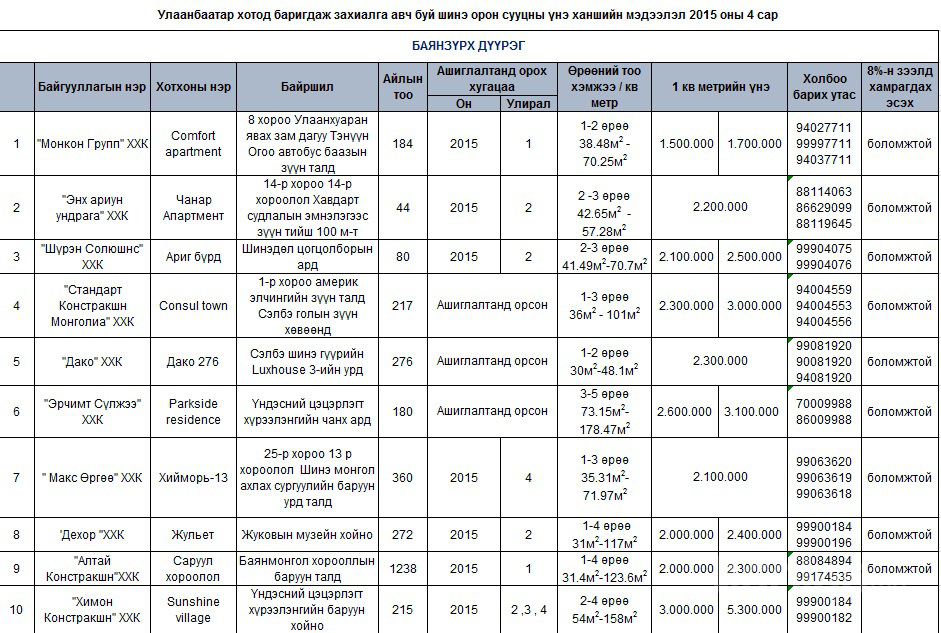 Сонгино-Хайрхан дүүрэгт борлуулагдаж шинэ орон сууцны үнийн доод үнэ 1.500.000 мянган төгрөгтэй байна.