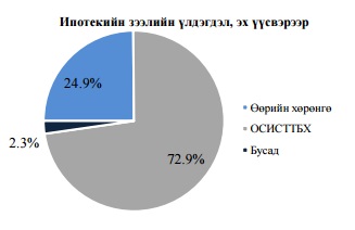 2196.9 тэрбум төгрөгийг “Орон сууцны ипотекийн санхүүжилтийн тогтвортой тогтолцоог бүрдүүлэх хөтөлбөр”-ийн зээл (жилийн 8 хувийн хүүтэй зээл болон 8 хувийн хүүтэй зээлд шилжүүлсэн зээл),