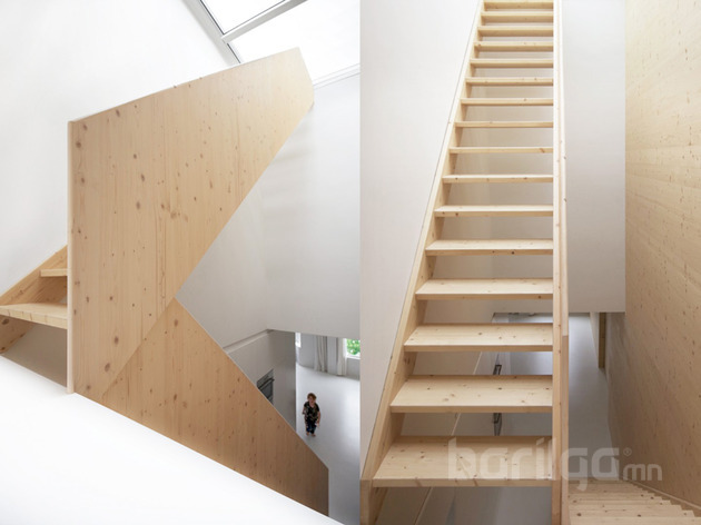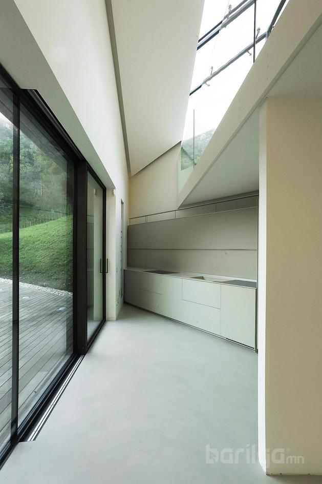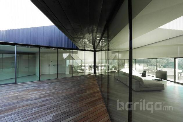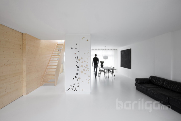 Амстердам дахь энэхүү гайхалтай орон сууцны архитектур, интерьер дизайны шийдлийг ногоон барилгын үзэл баримтлалын дагуу барьжээ. Байшингийн дээд давхарт гэрэл гэгээ хэдэн талаас нь нэвтрэн орохоор шийдэж хийсэн нь эрчим хүчний хэмнэлт, нарны эрчим хүчийг хуримтлуулах төхөөрөмж хүртэл байрлуулсан нь цэвэр эко барилга болж чадсан юм. Уг байшингийн доор газар ухаж 1200 мкв зай талбай бүхий өрөөнүүдийг гаргаж өгсөн нь гаднаасаа овор хэмжээ бага мэт харагдах ч доод дээд давхараас бүрдэх томоохон бүтээн байгуулалт болсон юм. Байшингийн интерьер дизайныг цагаан өнгөөр нилэнхүйд нь хийж өгсөн нь модерн