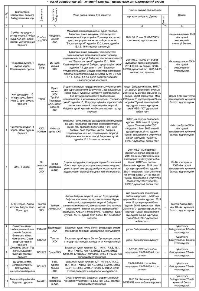 Мөн зөрчил илэрч байгаа ч эдгээр зөрчлөө арилгаж чадахгүй байгаа компаниудыг нэрийг дурдаж, салбарын яам хамтарч ажиллахыг сануулсан юм.