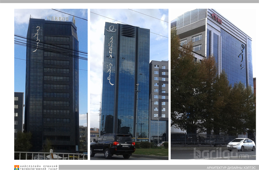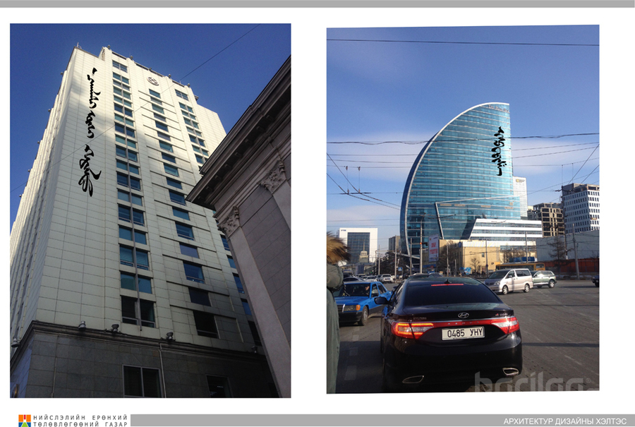 Нийслэлийн Ерөнхий төлөвлөгөөний газраас Монгол Улсын Засгийн газрын 2013.02.02-ны өдрийн “Монгол хэл, бичгийн боловсролыг сайжруулах арга хэмжээний тухай” 37 дугаар тогтоолоор “Ухаалаг Улаанбаатар хөтөлбөрийг хэрэгжүүлэх тухай” Захирамжийн дагуу байгууллага, аж ахуйн нэгжүүдийн гадна хаяг, зар сурталчилгааг Монгол бичгээр бичих төслийг санаачлан хэрэгжүүлж эхэллээ.