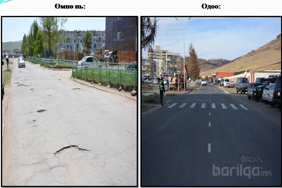 Эрдэнэт хотын гэр хороолол болон орон сууцны хорооллыг шинэчлэх, шинээр авто зам тавих томоохон зорилтыг 2014 онд дэвшүүлэн орон нутгийн төсвөөс есөн тэрбум гаруй төгрөгийг хуваарилан Эрдэнэт хотын 1, 2, 3 ,4, 5, 6 дугаар микро хороолол, Эрдэнэт – Хабитат, "Хантай" залуучуудын гудамж, Баянбулаг багт авто замын шинэчлэлийг хийж шинээр хатуу хучилттай зам тавигдсан бөгөөд