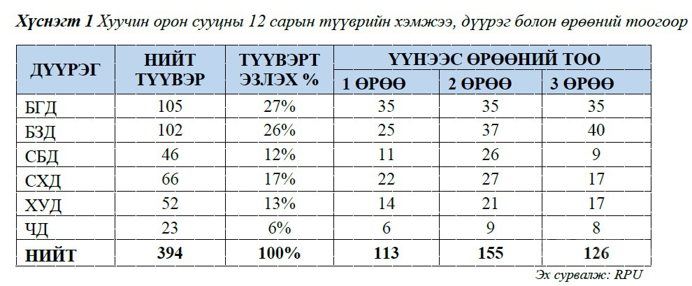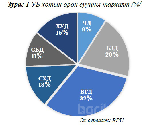 Улаанбаатар хотын хэмжээнд нийт хуучин орон сууцыг дүүргээр ангилж харвал: