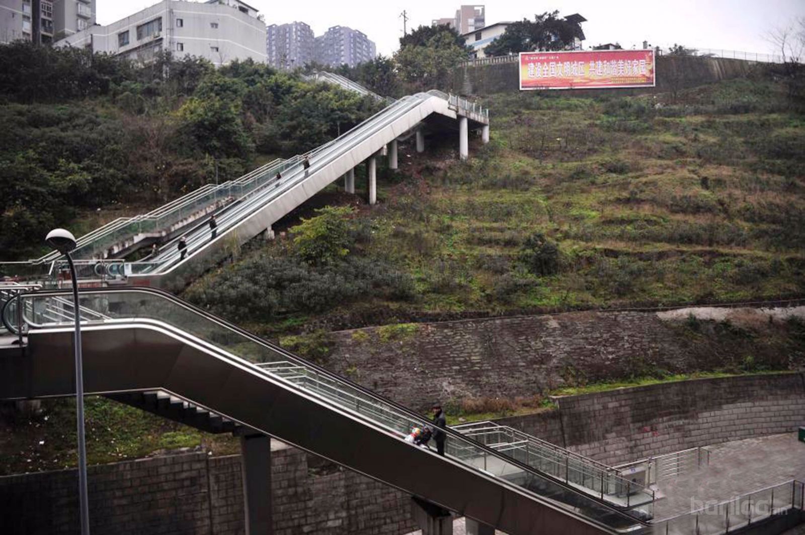 Хятадын Чонгчинь хотод нэгэн аварга том цахилгаан шат баригджээ. Тус цахилгаан шатыг уулын оройгоос доош дээш буух зориулалтаар хийж өгсөн нь тус хотын иргэдэд маш том хувь нэмэр болж байна гэж хотын оршин суугчид сэтгэл хангалуун буйгаа хэвлэлээр ярьсан. Энэхүү шатны онцлог нь анх удаа гадаах орчинд, тэр тусмаа ууланд байрлаж байгаагаараа онцлогтой. Чонгчинь хот бол уулархаг өндөрлөг газраараа алдартай . Шатны урт 10 давхар байшинтай эн тэнцэхээр тул автобусны буудал болон төмөр замын хооронд хялбархан зорчдог болжээ.