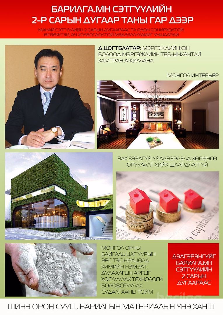 “Барилга.МН” сэтгүүлийн хагас жилийн захиалга 30,000 төгрөг, улирлын захиалга 15,000 төгрөг болно.