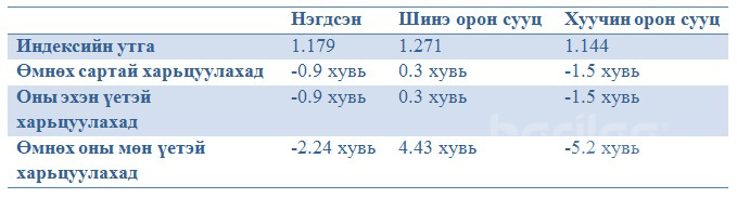 гэсэн дүгнэлт гарчээ. Хуучин орон сууцны үнэ өсч байгаа нь нэг талаар чанартай холбоотой эсэхийг тодруулахад ханшийн индекс нь чанартай үгүйг нь тодорхойлоход зориулж гаргадаг, ямар нэгэн өртөг шингээгүй цэвэр үнэ” гэлээ.