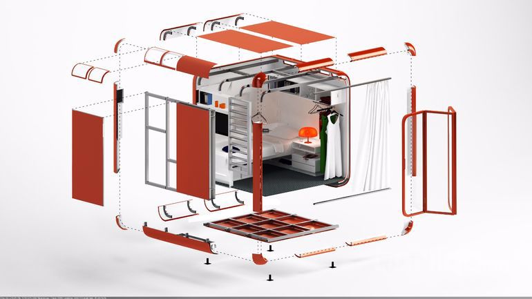 Дотор нь унтаж амрах ор, номын тавиур, компьютерийн ширээ, эмийн сан, телевизор багтах зай бий. Амрах хайрцгийн төсөл загвар гаргах шатандаа явж байгаа бөгөөд 2016 оноос бизнес эрхлэгчдэд зориулж 80 ширхэгийг худалдаанд гаргахаар төлөвлөөд байгаа аж. Эхний ээлжинд Юта мужийн Lassonde Studios их сургуулийн байранд байрлуулахаар төлөвлөжээ.