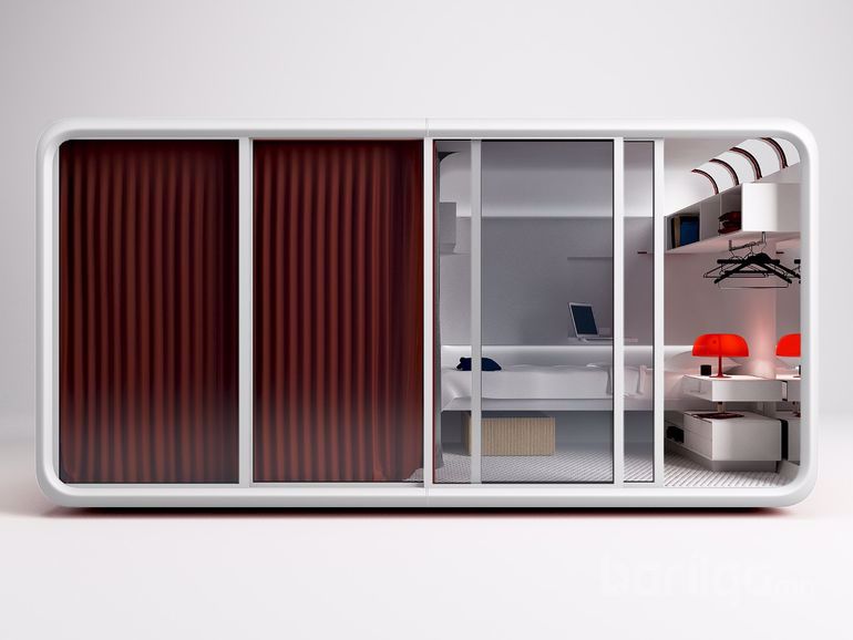 Энэхүү унтлагын бяцхан өрөөг хаана ч байрлуулж болно. Хамгаалалтын шилэн бүрхүүл бүхий модон хайрцагт агааржуулалтын систем, цахилгаан, хэрэглээний ус гээд бүхий л зүйлийг шийдэж өгсөн.