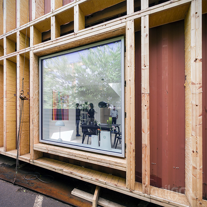 Гурван ширхэг контейнерийг нийлүүлэн барьсан энэхүү байшин нь ямар барилгаас дутахааргүй тохилог болсон бөгөөд хооронд нь сендвичин хавтангаар холбож, дулаалсан байна. Түүнчлэн гадна фасадыг өнгөлгөөний хавтан ашиглан хийсэн нь өнгө үзэмжтэй болоход нөлөөлжээ.
