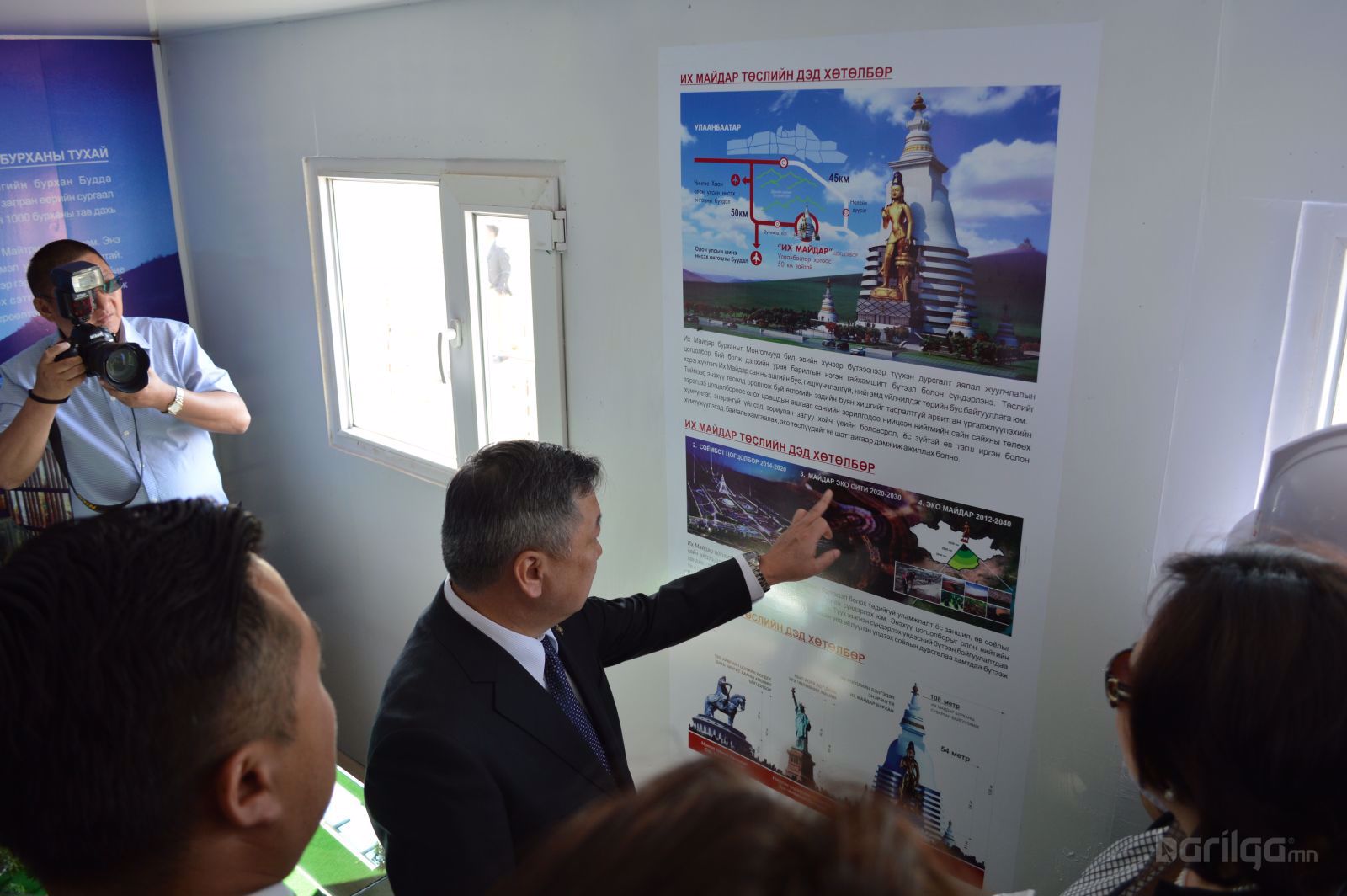 УИХ-ын даргыг “Майдар эко хот” төслийн ажлын явц байдалтай танилцах үеэр УИХ-ын гишүүн С.Одонтуяа, Барилга, хот байгуулалтын дэд сайд Г.Байгалмаа болон албаны бусад хүмүүс байлцав.