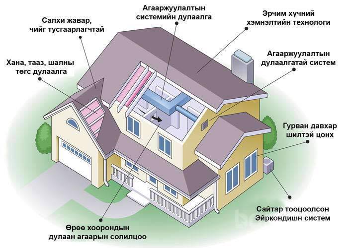 • Өрөөний зохион байгуулалт, бүсчлэл. Өрөөний зохион байгуулалтанд дулаан солилцоо болон агаар сэлгэлтийн онцлогийг харгалзах