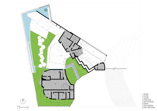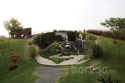 Энэхүү захиалгыг гүйцэтгэсэн мэргэжилтнүүд байшин гэхээсээ илүүтэй элбэг дэлбэг ногоон байгууламж бүхий сууц барихыг зорьжээ. Тиймээс архитекторууд талбайг ашиглан, толгод, хөндий, өндөрлөг тавцан, хадан цохио, агуй, жалга гуу, эрэг гэх мэт байгалийн тогтцуудыг бүтээж, тэр бүхэнд зориулан мод, ургамал, хүнсний ногоо, өвс, усны эргэмэл зэргийг тарьж ургуулсан байна.