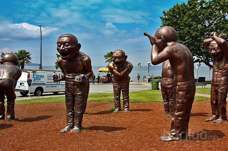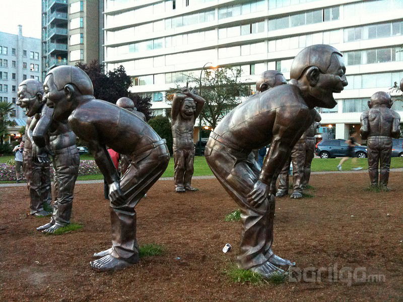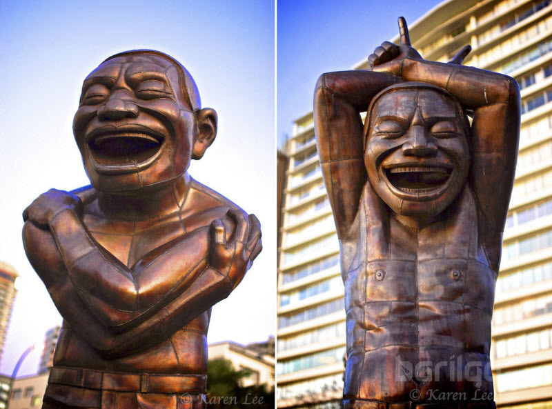 Гайхалтай инээмтгий хөшөө нь ихэр татан инээж буй 14 эрэгтэйг дүрсэлсэн байна. Тус хөшөөг 2009 онд Канадын Ванкувер хотын Мортон цэцэрлэгт хүрээлэнгийн олон улсын Бенналь сангын өмнө байрлуулсан аж. Хөшөөний эргэн тойрон дох цэцэрлэгжилт маш гайхалтай болсон бөгөөд Ванкуверын оршин суугчдын хайртай уран бүтээлийн нэг юм.