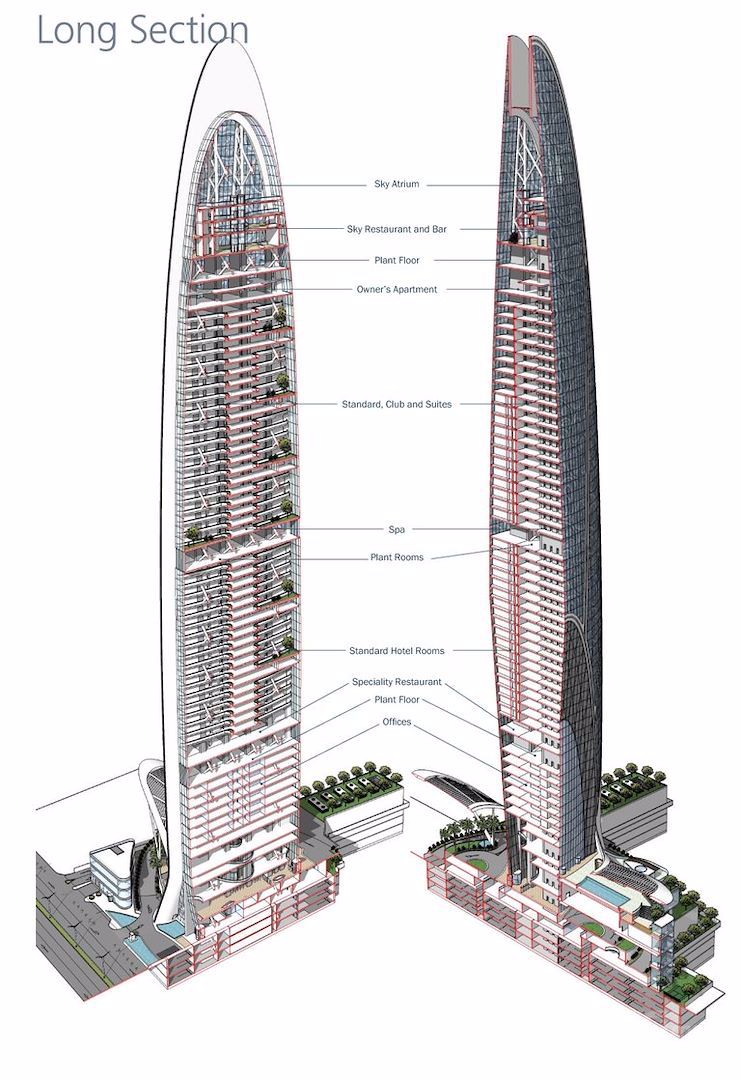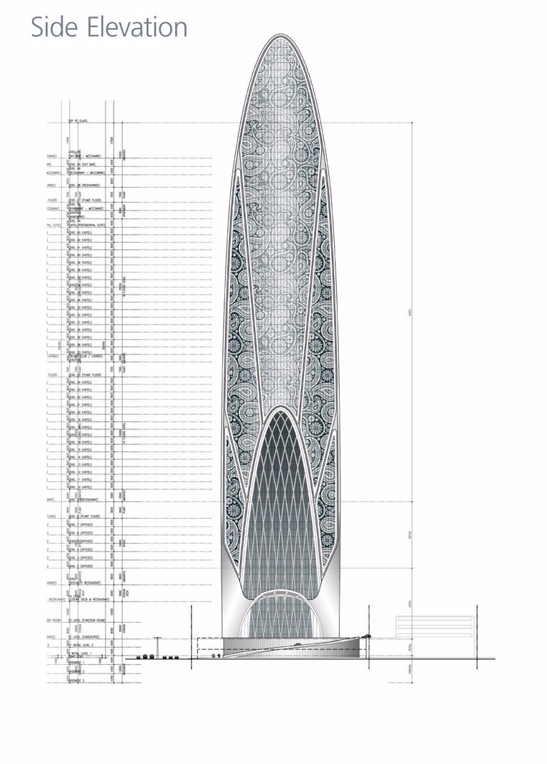 Аткинс дизайн студийхэн барилгын зургийг гаргахдаа далбаат онгоцны дарвуулийг санагдуулам төлөвлөж бүтээсэн нь сүрлэг харагдуулна. Тус барилгад тансаг зэрэглэлийн зочид буудал, ресторан, дэлхийн брендүүдийг нэг дороос авах дэлгүүрүүд зэрэг үйлчилгээний төвүүдийг багтаасан томоохон бүтээн байгуулалт юм.