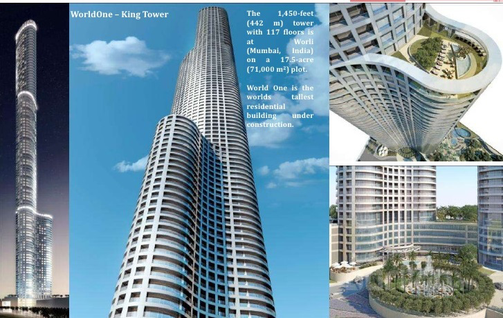 Энэхүү “World One” нэртэй тэнгэр баганадсан барилга нь Энэтхэгийн Мумбай хотод баригдаж буй томоохон бүтээн байгуулалтын нэг юм. Уг барилга 2016 онд ашиглалтанд орно. Барилгын онцлог нь үйлчилгээний төв гэхээсээ илүүтэйгээр орон сууц хэлбэрээр баригдаж байгаагаараа дэлхийн хамгийн өндөр орон сууц болж байгаа юм. 1-5 давхар хүртэл үйлчилгээний төвүүд байрлана. “World One” барилга нь 117 давхар өндөртэй.