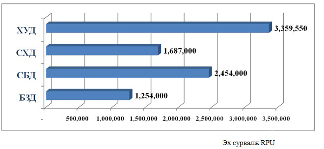 2,770,333 төгрөгийн үнэтэй байна. Дундаж үнийг дүүргээр нь ялгаатай гаргаж үзвэл хамгийн өндөр үнэтэй нь ХанУул дүүрэгт