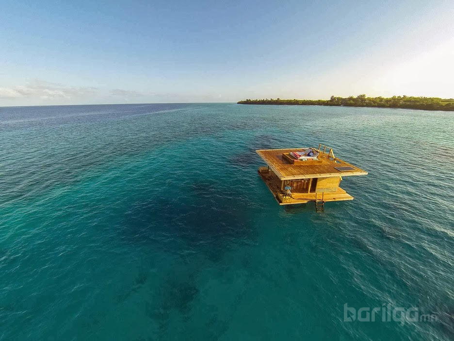 Далай тэнгисийн адал явдалд дуртай жуулчдад зориулсан нэгэн сонирхолтой амралтын газар Энэтхэгийн далайн эрэг дээр Танзани улсад бий. “Ногоон арал” нэрээрээ алдаршсан Пемба арлын ойролцоох Манта амралтын газрын өрөөнүүд нь далайн усан дор байрладаг.