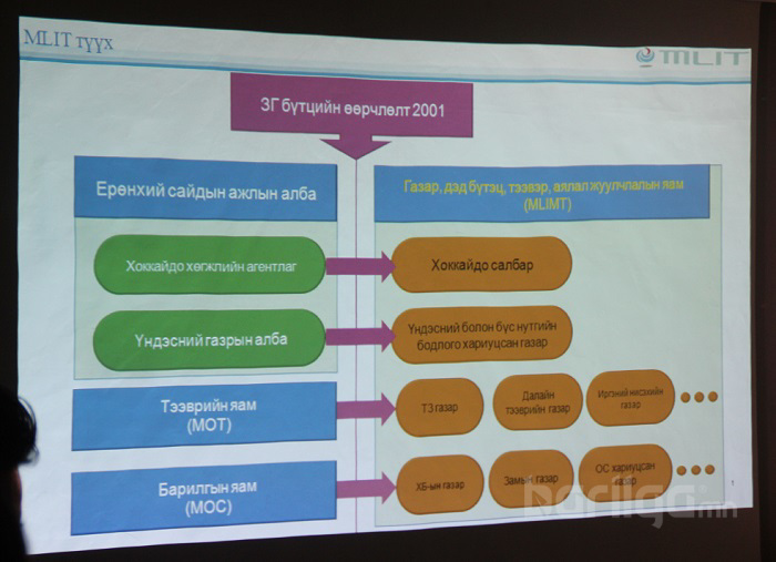 Илтгэлийн хоёрдугаарт: Япон улсын Газар, дэд бүтэц, аялал жуулчлалын яамны гадаад төсөл, бодлогын алба хариуцсан захирал Такаюки Эзаки илтгэл тавьлаа.