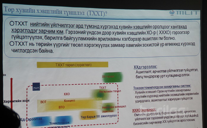 Байлгүй яахав. Төр хувийн хэвшлийн түншлэл явуулахад түншлэлээр явагдах төслийг мэргэжлийн талаас нь олон улсын мэргэжилтнүүдийн гадаад хамтын ажиллагааны хүрээнд зөвлөгөө туслалцаа үзүүлэх тал дээр хамтарч ажиллах болно.