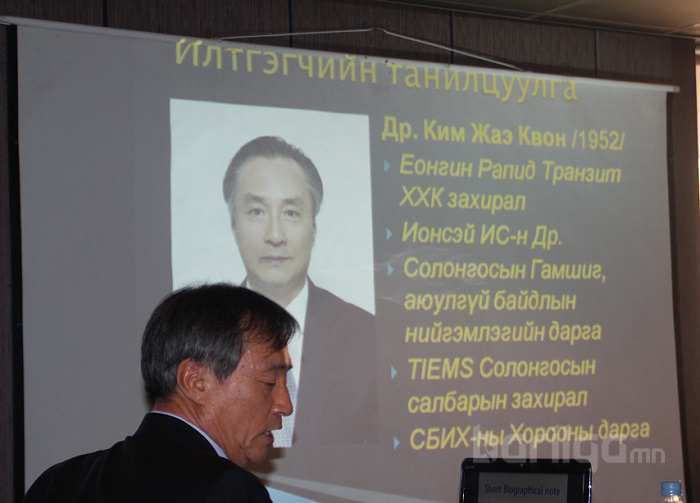 Дугуй ширээний уулзалтын илтгэлийн эхэнд: БНСУ-ын Хотын нийтийн галт тэрэгний төслийн талаар Еонгин Рапид Транзит ХХК захирал, Ионсэй их сургуулийн доктор Солонгосын гамшиг аюулгүй байдлын нийгэмлэгийн дарга Доктор Ким Жаэ Квон илтгэлээ тавьсан юм.