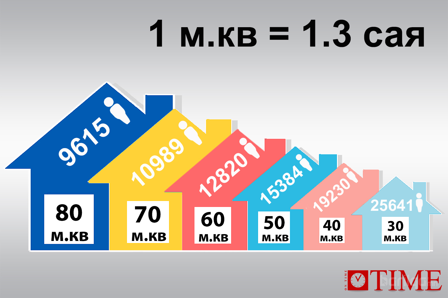 Өдөртөө хэд хэдээрээ нэмэгдэж байгаа барилгуудыг бүгдийг нь энэхүү зээлээр өгөх боломжгүй. Нөгөө талаас эрэлтээ тооцсон ч орон сууц худалдан авч буй бүх хүн хөтөлбөрт хамрагдахгүй нь ойлгомжтой. Хөгжлийн банкнаас 200 тэрбум төгрөгийн зээлийн баталгаа гаргах шийдвэр гаргасан. Энэхүү мөнгөөр хэдэн хүн 10 хувийн урьдчилгаа төлөөд ипотекийн зээл авах боломжтойг дунджаар тооцоолъё. Ипотекийн зээлээр борлуулагдах орон сууцны нийт талбай 80 м.кв-аас ихгүй байх учиртай. Тиймээс орон сууцны талбайг 30-80 м.кв-ын хооронд тооцоолов.