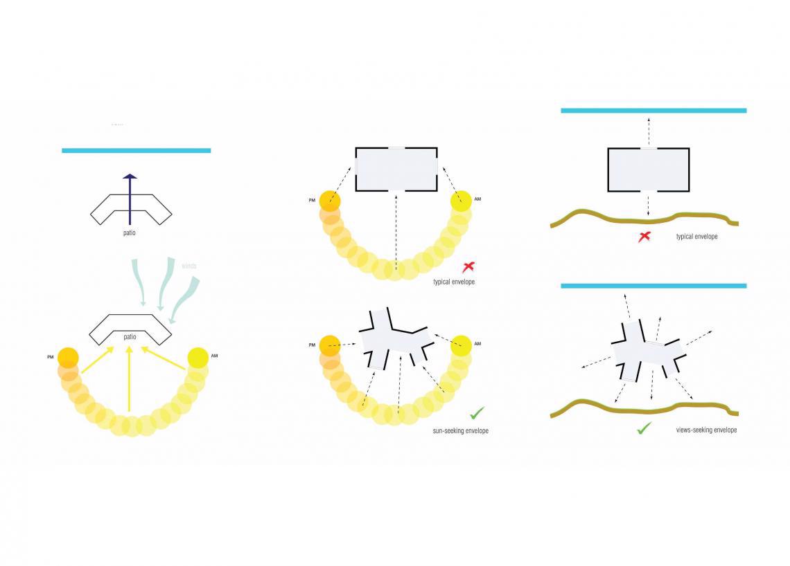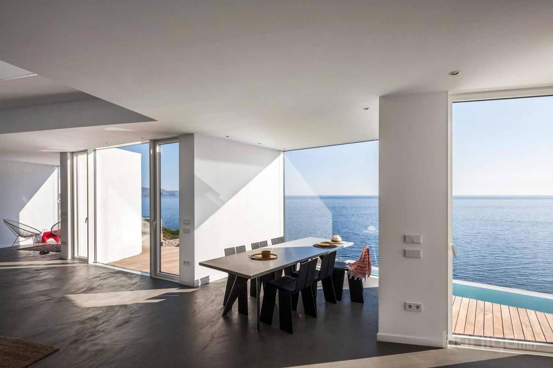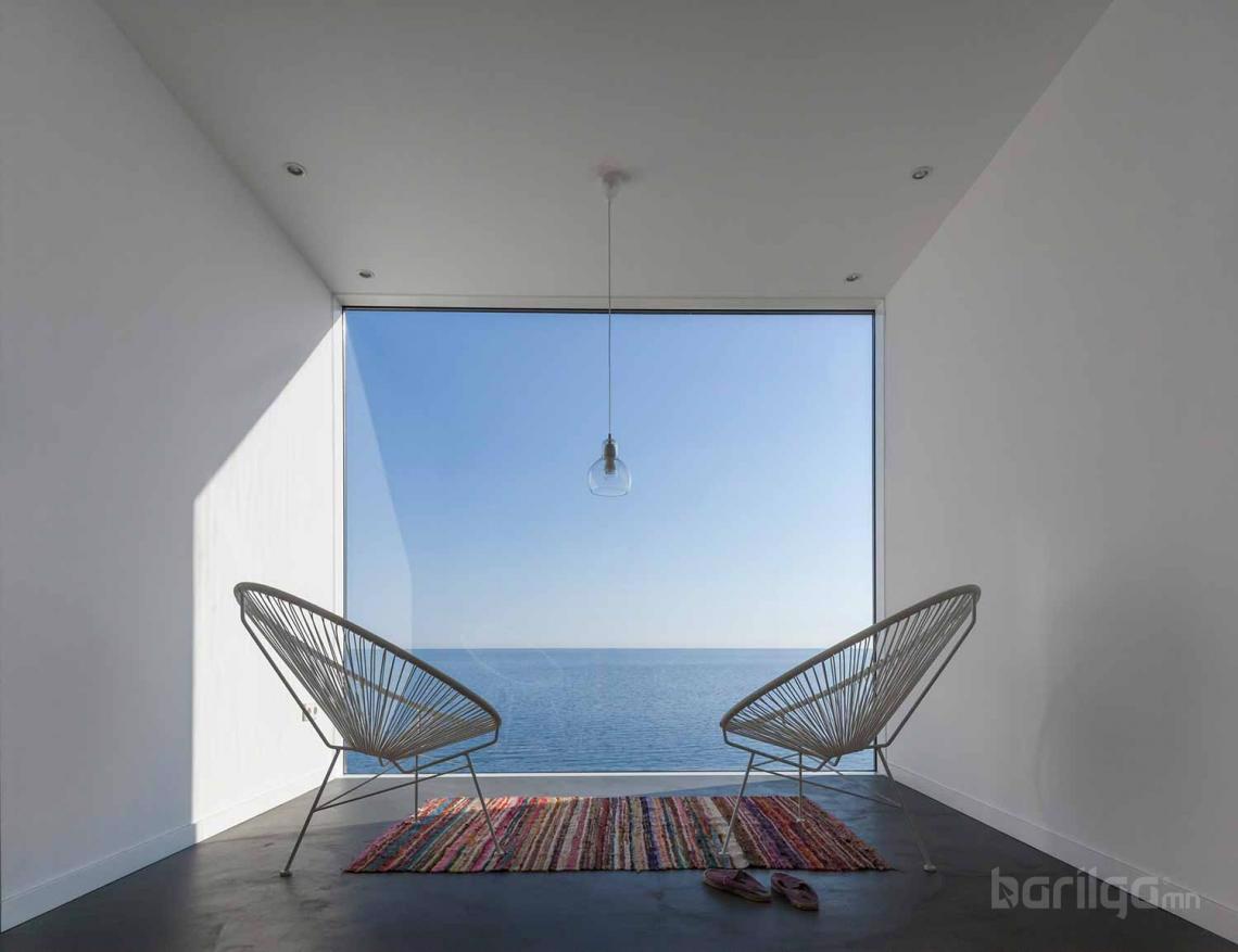 Байшингийн эзэн анх далайн эргийн газрыг худалдан авахдаа сэтгэлд бүрэн нийцсэн гайхалтай гэр бүлийн сууцтай болно гэж төлөвлөсөн ч хэд хэдэн бэрхшээл тулгарсан байна. Учир нь тухайн хэсэг газар хойгийн хамгийн хүчтэй салхины нөлөөнд байдаг, нарны цацраг ч бага тусдаг байжээ. Харин Cadaval & Sola-Моrаlеs уран барилгын компани барилгыг олон өнцөг бүхий шилэн нүүртэй төлөвлөснөөр эдгээр бэрхшээлийг шийдэж, нарны гэрлийг мэдрэх боломжийг бүрдүүлсэн байна.